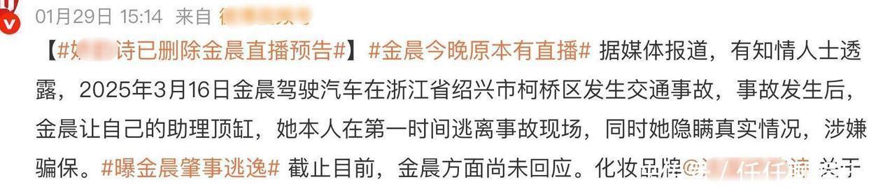 吓得不少品牌方开始打了个退堂鼓,要么选择隐去和金晨的合作部分,要么干脆取消了和她有关的直播安排。