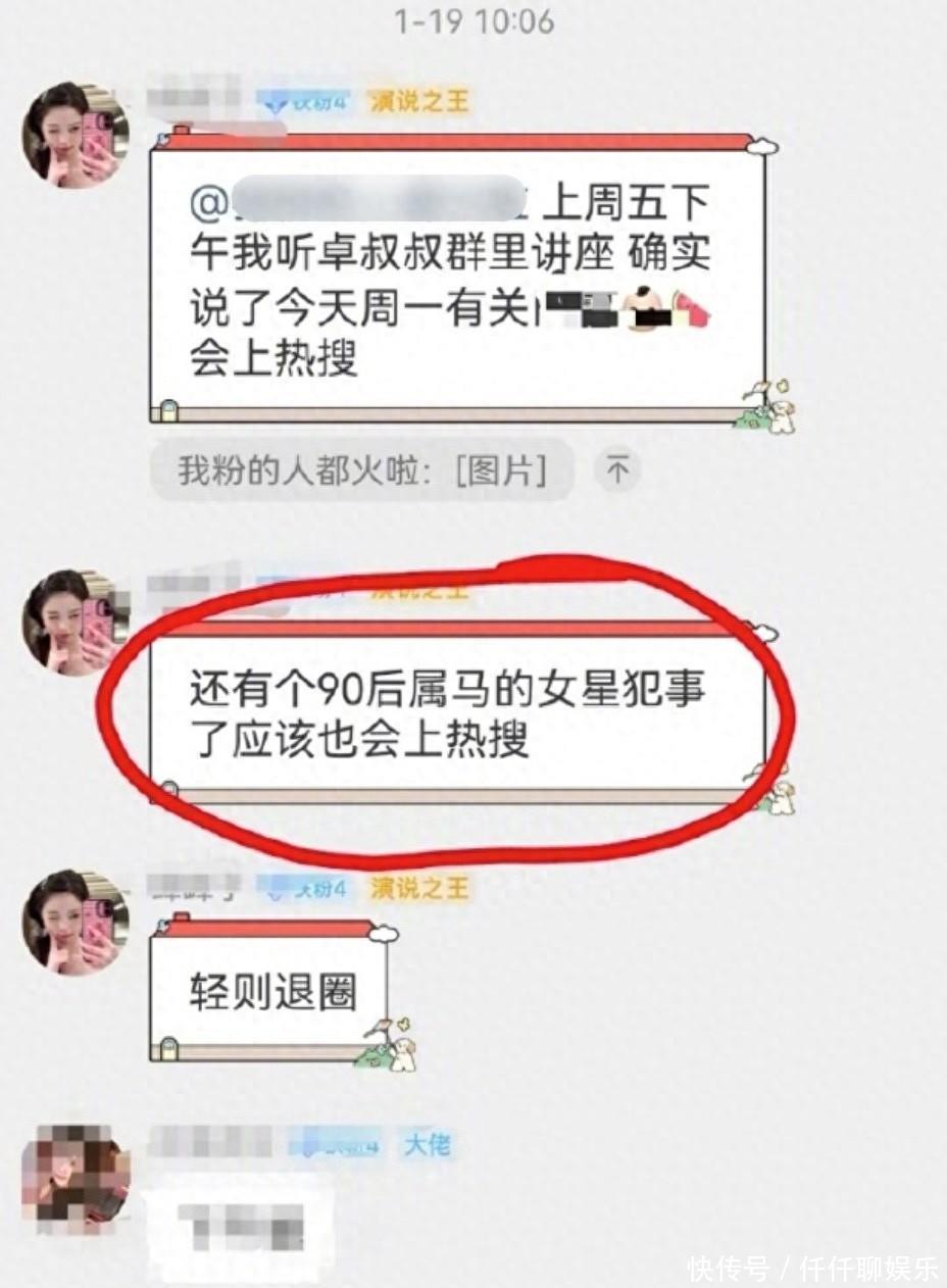 比如,1月18号有网友在群里爆料,说某个属马的90后女孩,因肇事逃逸加上找人顶包的事儿,快要被揭露出来了。一旦曝光,估计就得退出圈子,甚至可能进“橘子”那边歇歇。