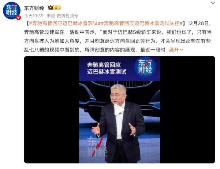 这场争议的源头,是此前某品牌在新车发布会上公布的一组极寒环境对比测试视频。该视频显示,迈巴赫S级轿车在完成避障动作后,从粗糙路面驶入光滑路面时出现车身来回移动的情况,视频发布方称其在时速仅52公里的状态下便发生了失控,引发市场广泛讨论。